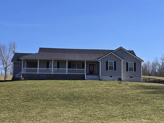 Country retreat on 7.31 acres just minutes from Town! Come check out this beautiful 2022 sq. ft ranch home featuring 3 bedrooms and 2 full baths. Relax and take in the peaceful surroundings from the wrap-around front porch, perfect for morning coffee or evening sunsets. You'll enjoy the open concept living space with a nice sized kitchen with stainless appliances and large vaulted family room with a beautiful stone fireplace for those cold winter nights. The primary suite has tray ceilings, a nice soaking tub, tiled shower and double vanities. Sit on the deck and enjoy country living with plenty of room for outdoor activities, a hobby farm or space to roam. Don't miss the opportunity to buy a slice of Kentucky country living! Schedule your showing today!