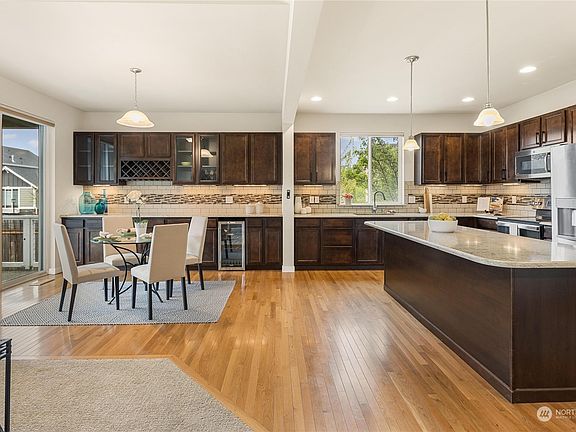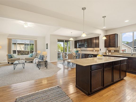 OFFER RECEIVED! Review date moved to 4/13 10am. Turn key single story home in a great location! Open concept with high ceiling, big windows & gas fireplace. Featuring customized entertainment kitchen with quartz counter tops, SS appliances, tile backsplash & huge island with seating. Additional cabinetry & countertop extends into the dining room with built in wine fridge. The sliding glass door leads to the private patio & fully fenced backyard and garden. Primary bedroom features 5 piece bath with double sink. Enjoy fresh paint & newer carpet throughout. At just 9 years old, this 3 bed, 2 bath home is practically new! Lovely neighborhood close to amenities, walking trails, & I-5.