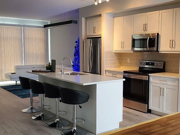 Eye-catching architectureModern full equipped kitchenStainless steel appliancesSeparate laundry space