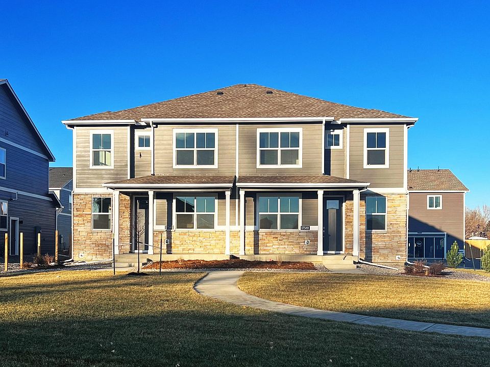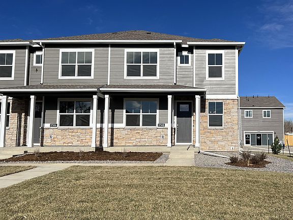 ***READY NOW*** Welcome home to Hansen Farm in SE Fort Collins with NO METRO DISTRICT! The Vail floor plan is a 4 bedroom, 2.5 bath paired home with an attached 2-car garage. Enjoy your outdoor space on the inviting covered front porch overlooking a large area of community open space that is maintained by the HOA. The main floor is a stylish open-concept kitchen, dining and living room along with a convenient half bath. The kitchen is equipped with a quartz island and a 5-burner gas range. The second floor has four spacious bedrooms with ample closet space. The primary suite is a peaceful retreat with an en suite bath featuring double sinks and an impressive walk-in closet. Laundry chores are a breeze with the laundry room conveniently located upstairs. This energy efficient home includes air conditioning, tankless water heater, and the smart home package! Experience low maintenance living at its best and take advantage of Hansen Farm's community walking trails and future access to the Power Trail! The community is conveniently located near all your school, shopping and recreational needs. ***Photos are representative and not of actual home***