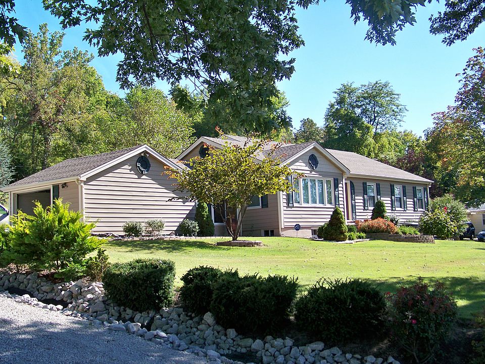 NEW PRICE! 15 MINUTES from DOWNTOWN ST LOUIS! This professionally landscaped 2.2 acre lot on the Illinois Bluffs has a gorgeous ranch home that has been Updated for total Energy Efficiency, Duraplank Siding, Double and Triple-Pane Tinted Gas-filled Windows, High Efficiency HVAC, 30 YR Architectural Shingle Roof. Beautiful White Custom Woodwork (crown molding, wainscoting, dental, bookshelves, built-ins and more). This 3BR, 2Bath home has larger than average rooms, storage and closets! The master suite is 18x20 with his and her closets, master bath has vaulted ceiling, skylights and a jetted tub, double sinks and large separate shower w/ bench. Beautiful new kitchen with high-end stainless steel appliances is a dream. 1000 sq ft composite deck spans the entire back of this home and can be accessed from the master suite and breakfast room. Too many Updates to list. This is a Must See!