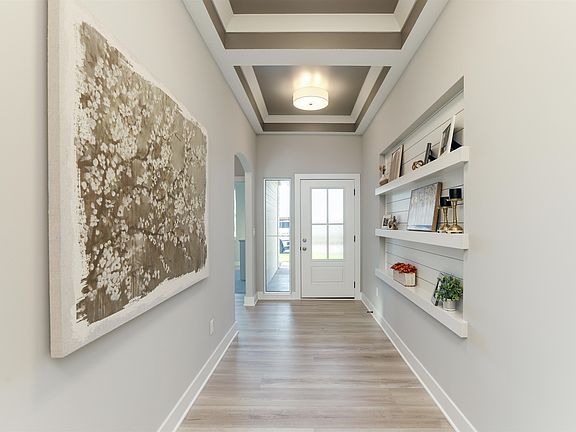 This new Kinsey model by Mullin Inc is move-in ready! Zero entry 3 bedroom, 2 bath open floor plan with pocket office. Stunning entry leading to large living room, dining and kitchen with vaulted ceilings. Kitchen with large quartz island, stainless steel appliances and a walk-in pantry storage. Master suite with accent wall, custom tile shower, large double vanity and walk through closet to large laundry with sink. Enjoy the outdoors on the screened in patio with gas fireplace. Second bedroom closet doubles as a safe room. All information deemed reliable but not guaranteed. Estimated taxes and specials.