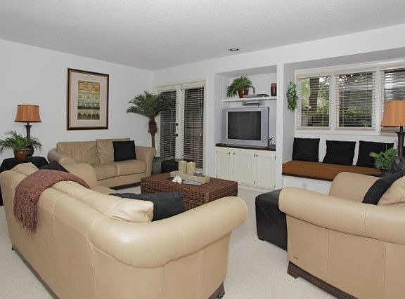 1758 St Andrews Common First floor, true two bedroom and two full bath villa with two story bay window providing great natural light. Kitchen opens to great room with living and dining. Separate room could be office or space for fold out bed. Enclosed patio has privacy and enjoys wonderful landscaping with a fountain. Since 2004 following has been updated: flooring, all furnishings, all new appliances, 4 newer TVs, kitchen cabinets. Very well maintained property. Regime installed new roofs in 2010 and have been updating exteriors over past four years. Oceanfront community. Good short-term and snow bird rental units. Per owner: Our association is in good financial condition & funded well for specific projects & emergency. New siding, paint & roofs. Pool is in excellent condition.