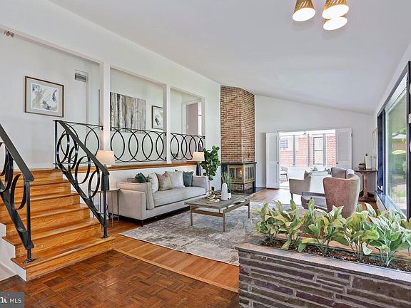 Endless amount of space in this 4BR/3BA, sun drenched, Mid Century Modern Split-Level home. Located in the sought-after neighborhood of Colonial Village, this impressive home offers an Open First floor featuring a large living room with soaring ceilings, beautiful hardwood floors, large picture window, and fireplace with floor to ceiling brick chimney, Sunny Dining Room, Table Space Kitchen, and comfortable Den with second fireplace. Upper floor features: 3 Generous Bedrooms and 2 large Full Bathrooms. Lower levels have two huge rec rooms with high ceilings, second Kitchen, Full bath and 4th Bedroom. This home also boasts a deep front yard with mature trees, large back yard, rear screened porch, and 2 car attached garage. New front roof installed July 2022.