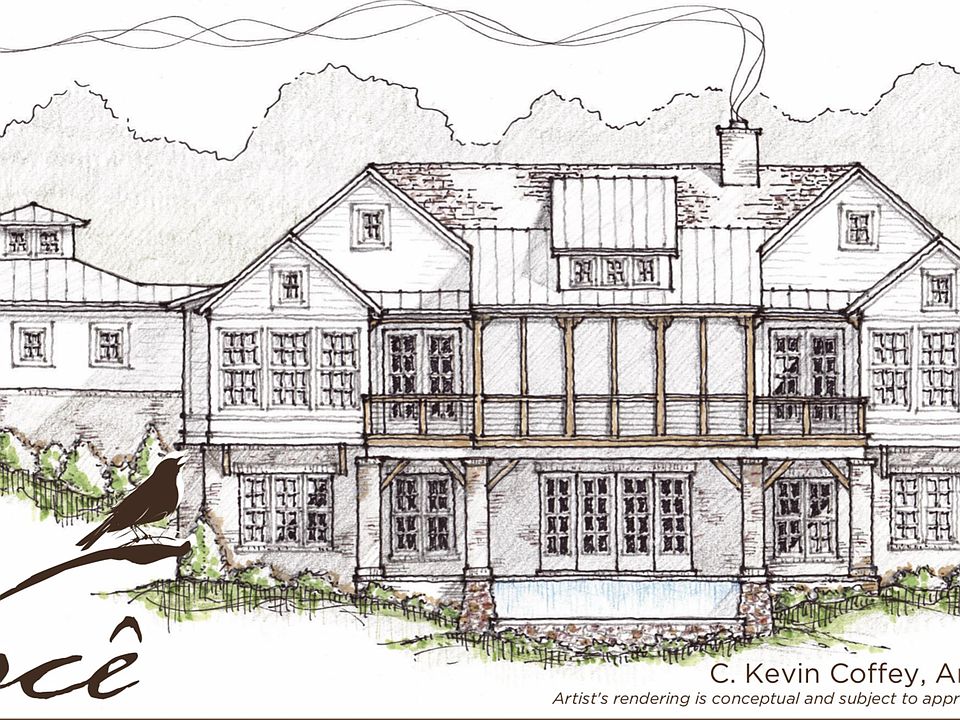 Conceptual home designed by architect C Kevin Coffey for Homesite #41 at Voce. Plan can be customized and is subject to approval/change. Flexibility in proposed square footage and number of beds/baths. (Listing includes optional, 1100 SF upper level.) Finished walkout basement with covered terrace and optional pool. Homesite surrounded by beautiful, mature trees. Construction has been delayed - Expected completion Winter 2020.