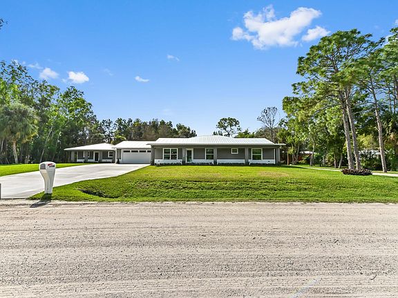 Discover the perfect blend of space, comfort, and versatility in this stunning newly built 4-bedroom, 3.5-bathroom CBS home, with a full guest house and fully air conditioned 1200 sq ft detached garage with office situated on a sprawling 1.15-acre lot in a desirable non-HOA community of The Acreage. Designed for both entertaining and everyday living, the open floor plan features vaulted ceilings, a spacious living area, and a beautifully appointed kitchen with an island, marble countertops, and an adjacent pantry for ample storage. The thoughtfully designed floor plan includes a Jack-and-Jill bathroom for bedrooms 1 and 2, while the main suite boasts a luxurious ensuite bathroom and a walk-in closet. Property has full reverse osmosis water filtration system too! Step outside to the expansive screened patio, where you can enjoy the peaceful surroundings and Florida sunshine in total privacy. The separate guest house offers a fantastic opportunity for multi-generational living, hosting visitors, or even rental potential. With its own living area, kitchen, laundry closet, bedroom, and ensuite bathroom, this additional space provides ultimate flexibility. A fully air conditioned & insulated detached garage with an office and extra storage space further enhances the functionality of this incredible property, making it ideal for car enthusiasts, hobbyists, or those needing a private workspace.