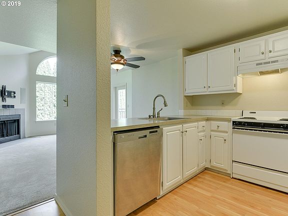 Popular Bethany area. Great schools-close to Intel & Nike. Right next to Rock Creek PCC. Vaulted great room w/wood fireplace. Washer/Dryer & Fridge stay! Vaulted bedrooms w/new carpet. Master suite w/double closets. Main bathroom completely redone. Fresh interior paint. New wall heaters. TV mount/Surround sound. NO RENT CAP! End upper unit at back of complex w/1 car garage. Quiet patio.HOA: water, sewer, garbage, pool, ext. maintenance.