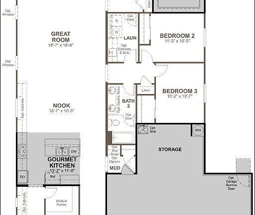 You'll find plenty to love about the Raleigh plan! The center of the home boasts a large kitchen with a convenient center island and walk-in pantry, which flows into an open-concept dining nook and great room. The owner's suite is adjacent, with a deluxe master bath shower and a walk-in closet. There are two bedrooms and a bath off the great room and off the entry is a private study. Additional options include ten foot ceilings, 3 car garage, gourmet kitchen, soft water preplumb and great room center meet slider