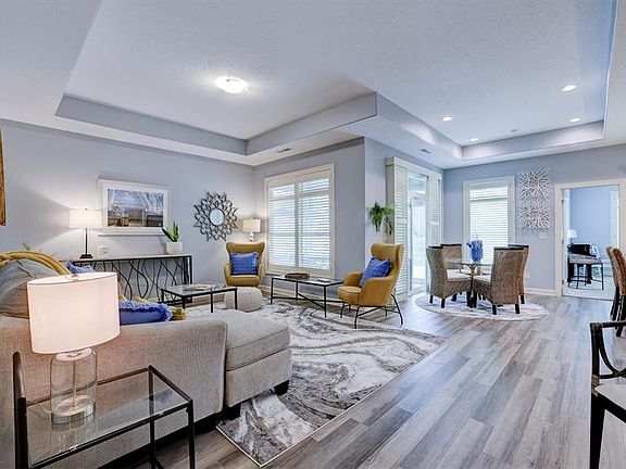 Impeccably cared for ranch villa in the 55+ Courtyard of Shadow Creek neighborhood. Style is a Capri with 1325 SF of living space. Community building/activities/outdoor swimming pool are just a short walk away. Step inside to discover the kitchen showcasing beautiful “creme/white” cabinets/pantry. Open floor plan connects kitchen, which boasts large island w/SS appls to the living/dining areas. Dining area overlooks the screened in porch which leads to concrete patio. Notable highlights include rounded corners/tray ceilings/beautiful arches/transom windows, contributing to its architectural charm. Adorned with LVP flooring/tile/carpet, ensuring durability. Laundry room boasts cabinetry/sink.