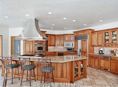 MOST BEAUTIFUL 40-ACRE HORSE PROPERTY, SOLID BRICK RANCHER NESTLED ON RARE MIX OF ROLLING MEADOW & TALL TREES W/INDESCRIBABLE VIEWS OF PIKES PEAK & ENTIRE RANGE, FULLY FENCED, DIVIDED IN 2 PASTURES, 4-STALL BARN W/WATER, POWER & SKYLIGHTS, 12X12 SHED W/220v, CIRCULAR DRIVE WAY, DREAM KITCHEN W/GRANITE COUNTERS, LARGE ISLAND, 2 SINKS W/DISPOSALS, HIGH-END CHERRY CABINETRY, SS APPLIANCES, INCL. DACOR DOUBLE OVENS, VIKING 6-BURNER GAS COOKTOP, IMPORTED BELGIAN VENT HOOD, WINE COOLER, SUB-ZERO FRIDGE, 2 BOSCH DISHWASHERS,