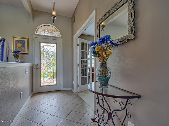 STONECREST ADULT GATED PRIVATE COMMUNITY W/all the amenities and 2 miles from THE VILLAGES W/GOLF CART ACCESS. This lovely SALT WATER POOL HOME BY ARMSTRONG. THE CEDAR model is located on GOLF COURSE AND POND FRONTAGE. Why pay to visit a resort when you can live in one? Curbside appeal with lush, mature landscaping and pavers adorn your extra wide driveway and walkway to your GLASS ETCHED FRONT DOOR. A 2 car garage and golf cart garage include built-in heavy duty storage shelves.. HIGH VOLUME CEILINGS throughout the home. Open floor plan and SPLIT BEDROOM DESIGN with TWO MASTER SUITES. PERFECT FOR LIVE-IN FAMILY MEMBER. 3 BEDROOMS/3 BATHROOMS, with 3rd BATH conveniently leading to pool. UPGRADES: plantation shutters and sunburst shade, TWO 40 gal hot water tanks for dual zone, WHOLE HOU TWO 40 gal hot water tanks for dual zone, new AMERICAN STANDARD HVAC 2018, stainless steel appliances, BOSE SURROUND SOUND, NEST THERMOSTAT AND SECURITY CAMERA, kit. cabinets w/PULLOUTS, deep SWANSTONE kit. sink, remote control pool station system, humidistat, DRY BAR W/UPGRADED CABINETRY, 9 LIGHTED BUILT IN SHELVES AND FRENCH DOORS LEADING TO DEN, TWO 8' SLIDING GLASS DOORS OPEN TO CONCRETE STAMPED LANAI FLOORING W/MOOD LIGHTING, 30' POOL (3-7 FT DEEP) W/CUSTOM TILE AND BUILT IN POOL TABLE AND SEATING, POOL SCREEN ENCLOSURE 20 X 60 FT. LOW VOLTAGE MOOD LIGHTING IN FRONT AND BACKYARD LANDSCAPE WITH TIMING. SPECTACULAR SUNSETS WHILE IN YOUR BUBBLING HOT TUB W/MAGNIFICENT CASCADING WATERFALL!