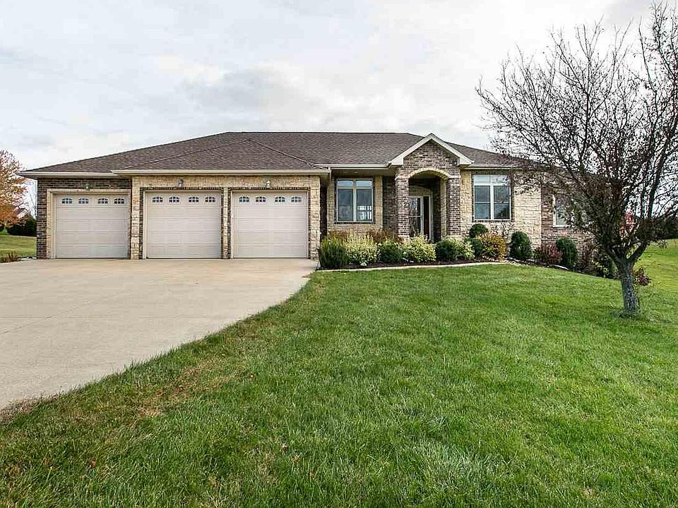 Country living at its finest! This 4 bedroom, 3 bath and 3+ car garage home has all the amenities that you are looking for. As you approach the home, you'll love the brick and stone combination exterior....Unique. Entering the home, you'll love the open floor plan with new carpet and light/fan fixtures. Master Bedroom has beautiful on suite bathroom with double vanity and huge walk in shower with multiple shower heads. Main level laundry with additional space for office, refrigerator or freezer. Kitchen has new appliances, beautiful Corian countertops along with Maple cabinets. Walk out the sliding doors in the kitchen to the covered patio and 10x11-3 season room. Yard is beautifully landscaped. Additional parking pad for RV/Boat. Lower level side walk out has newer ceramic tile flooring. Family room and recreation room with full size bar for entertaining all your family and friends. 4th bedroom and full bath. Whole house speaker system, Geo Thermal heating and cooling, fiber optic internet, wooden blinds, etc. just to round out the amenities of this wonderful home.