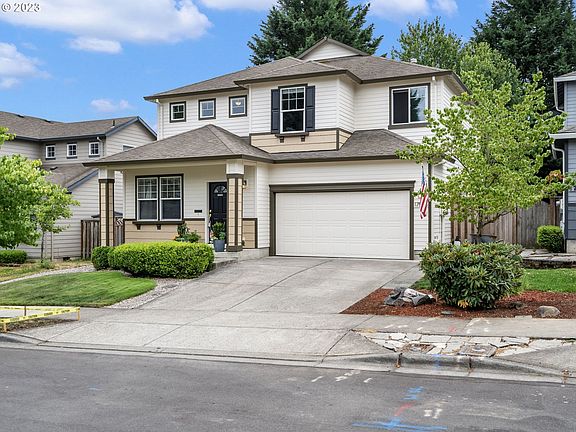 Delightful, well maintained, traditional home is nestled in the heart of Sherwood's sought-after Woodhaven neighborhood. Offers a perfect blend of modern comforts and classic charm, all within a tranquil and friendly community. Features 3 beds/2.5 baths, bright & elegant interiors, spacious layout, room for everyone. Formal living room, the family room with gas fireplace provides a cozy atmosphere and adds a great focal point. Fully furnished kitchen boasts Corian countertops, stainless steel appliances - including brand new dishwasher, gas range, fridge, pantry, and a convenient breakfast nook for casual dining. Upstairs has a spacious, lofted area with 2 separate and versatile spaces. Elegant primary bedroom offers a peaceful retreat with an en-suite bathroom featuring double sinks and a walk-in-closet. Laundry room includes washer, dryer, and extra storage. The private, fenced backyard beckons with a newer cedar deck, a patio for al fresco dining/relaxation, large shade trees, and is very low maintenance. Attached 2-car garage. Newer exterior paint, gas water heater, and LVP flooring. 5 upstairs windows recently replaced. Prime location, just a short drive away from local schools, parks, shopping, dining, and easy access to I-5 and 99W. Schedule a showing today and envision your future in this inviting sanctuary.