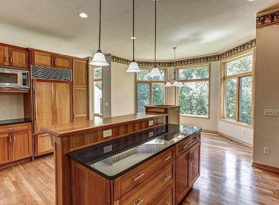Cherry hdwd floors,10 ft ceiling,Maple trimmed fireplace, wall of windows, wooded and wetland views. Gourmet kit w cherry cabs,island,granite,breakfast bar,app include double convec oven,5 burner cooktop,and Subzero frig. The master provides a WI closet, dual vanities w granite,jetted tub,shower. 2addl main floor bdrms w Jack and Jill bath. In-floor heated LL w fam room, fireplace, WO, full theater room. The LL bdrm includes a sitting rm. The multi-lev man cave includes 2340 SF of garage.