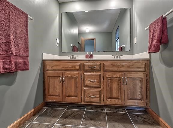 Prime Olathe location! Walk into the open and bright great room with large windows, a soaring ceiling and fireplace surrounded by built ins. There is plenty of room in the eat-in kitchen which has an island for extra counter space and storage. The master bedroom has vaulted ceiling, two walk in closets and updated bathroom. Enjoy an additional cozy living space in the lower level which walks out to a large patio. Fenced backyard with mature oak trees is great for entertaining, gardening and pets. Want more space? The lower level has been framed in for a 4th bedroom and stubbed for a 3rd bathroom, just needs sheet rock and finishes. Oversize 2 car garage with work bench and ample storage space in the sub-basement. Great location with quick access to I-435, I-35, 69 Hwy, K10 and K7.