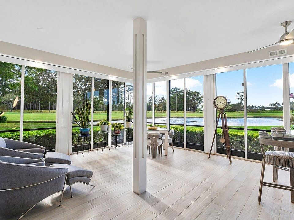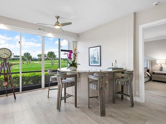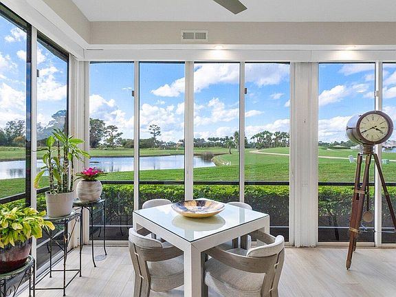 Breathtaking views of the tranquil lake and golf course make this condo one-of-a-kind. Meticulously renovated, the first-floor abode features a modern, open-concept floor plan that features stunning views from every room. The kitchen, fully revamped, offers abundant storage and features modern appliances, including an induction cooktop. Entertain seamlessly in the formal dining room flowing into the open-concept family and living area, complete with a circular bar and wine cooler to take in the stunning views with friends. The heart of the home is the fully enclosed patio adding additional interior square footage showcasing the panoramic scenery from all angles. The primary bedroom, with its spacious layout and spectacular vistas, offers an ensuite bathroom with dual sinks and a beautiful redone shower. The strategically placed second bedroom provides privacy and convenience with its en-suite bathroom. Additionally, a generously sized built-in office awaits that also serves a third guest bedroom, complete with a convenient powder bathroom nearby. With a new 2024 roof, this condo promises not only elegance but also peace of mind in its maintenance-free living. The Ashbourne community in the award-winning Polo Club offers a convenient satellite pool just down the street in addition to the world-class amenities the Clubhouse offers. Located in the award-winning Polo Club Country Club, this community offers fantastic amenities like the two championship 18-hole golf courses, an internationally awarded tennis/pickleball center, and a 145,000 SF Clubhouse with multiple restaurants, bars, gym/spa, aquatics center, and activities.