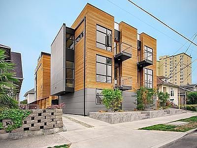 These eastern facing dwellings feature custom open riser staircases, bamboo cabinetry, in floor radiant heat, rooftop decks with amazing views of Lake Washington, downtown Bellevue & Mt. Rainier and are constructed for outdoor kitchen/bar, bamboo hardwoods and cedar framed windows, tons of natural light, tall ceiling heights, low maintenance landscaping and private garages.