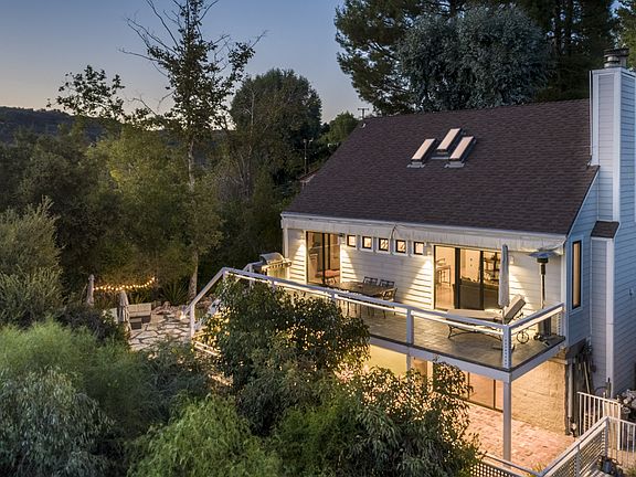 Catch hawks flying overhead and cool on shore breezes, this home captures a cooler micro climate with stunning cross canyon views stretched out over rustic mountains that end in breathtaking sunsets. Gorgeously high ceilings, wonderful hard wood floors , views from every impeccably window & skylights each allowing light to flow in. Master is on its own floor w/a romantic fireplace, walk in closet, pvt bathroom and a adjoining separate room, your pvt sanctuary . The main floor features high ceilings, an updated custom kitchen a well-considered dining room, large living room enhanced by a gorgeous fireplace, abundant views & a large deck stretching the full length of the home, a perfect place to lounge & BBQ. Slip away to the den/media rm for movie night/gaming. 2 large Upstairs bedrooms, also perfect for an office/gym, light & bright with a large bathroom w/deep tub in between. Home has fire-resistant siding, bonus generator and back up internet a over-sized finished 2 car garage