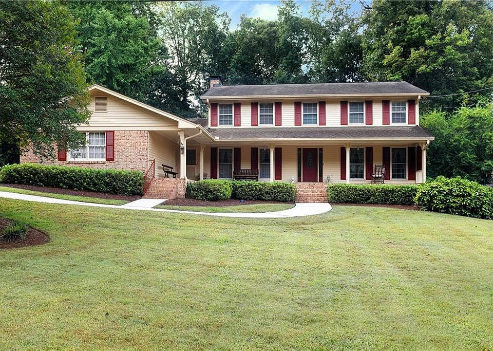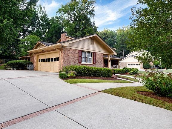 Dunwoody Club Forest, charming home with original personality to make your own. Welcoming rocking chair front porch with friends entry. Half acre and very private, lovely sun room with vaulted ceiling and sky lights with own thermostat for cooling and heating. Fireside family room that leads to the eat in kitchen, then joins to the dining room that is open to the formal living room or music room. Bedroom, full bath and huge laundry room with sink and built in desk finish the main level. Large owners suite with fireplace, separate tub and shower with two vanities. Two additional large bedrooms and full bath. Partially finished basement with full bath, exterior and interior entry. Home is sold AS-IS. Front lawn has just been aerated and seeded.