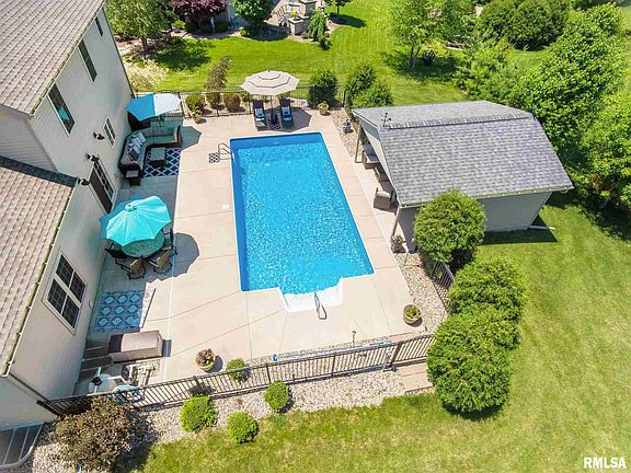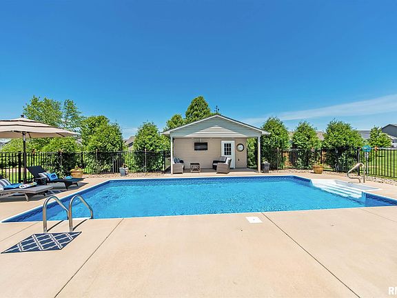 The Pool is Open!! Stunning 4 bedroom, 3 1/2 Bath Home in Mallard Crossing is just waiting for your family to move in & start enjoying life! Gracious entry opens to beautiful great room. Dining Room with hardwood floors and crown molding. Kitchen with island/breakfast bar, abundance of cabinet storage, & informal dining overlooking backyard oasis! Master Suite with vaulted ceiling, large walk in closet, & full bath. Three additional bedrooms, one with vaulted ceiling & Palladian window! Downstairs to finished rec room & additional bedroom & full bath. Extensive landscaping surrounds home & pool! Just in time for summer, relax by the 16x32 Saltwater Pool & 18x20 Coach House with cable, electric, & covered cabana. 3 Car Garage with anti slip floor covering. Updates: New Roof 2020, Interior Paint 2019, 50 gal fast recovery water heater & 16ft garage door opener 2018, water softener 2017. There really is nothing to do but move into this fantastic home!