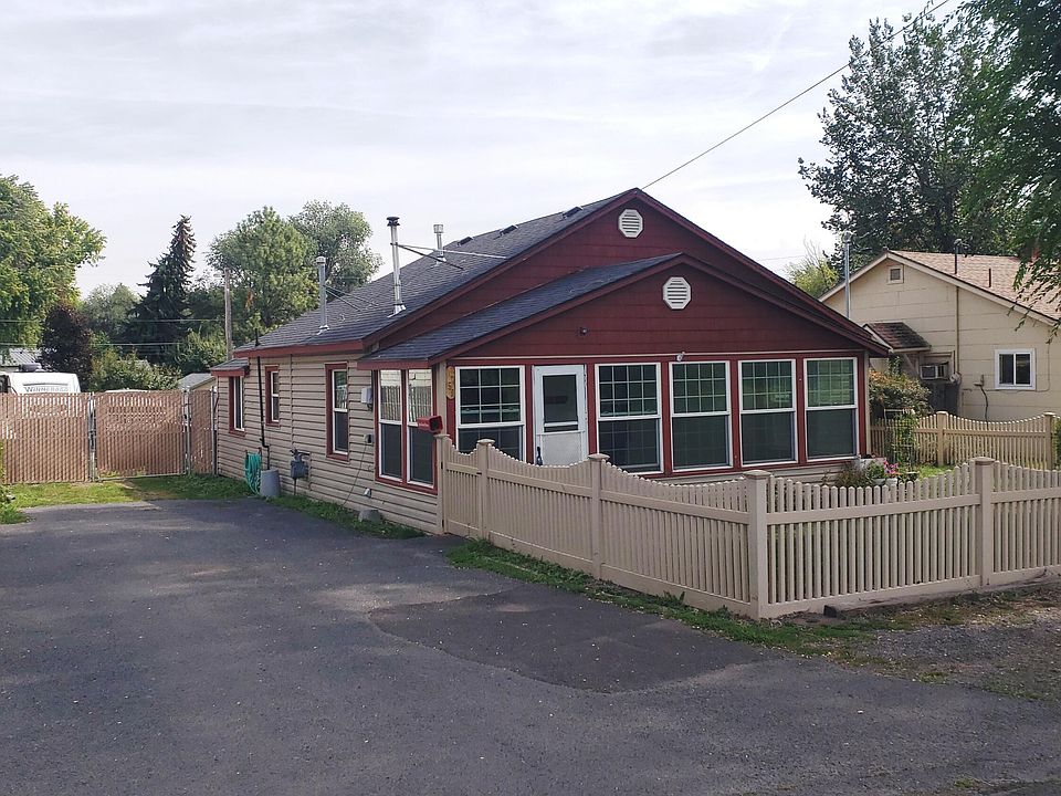 Very cute 3 bed 1 bath with a large enclosed front porch, a living room, kitchen, dining room, utility room and an office/hobby room that was previously used as a bedroom but does not have a window. Walk around floor plan. Large closets. Roof is about 1 year old. Vinyl windows and low maintenance vinyl siding. Living room features a pellet stove and a gas wall furnace. Covered walkway to deck and cold storage room off the back of the home. Previous garage concrete pad is perfect for parking your RV, toys or equipment. Commissions will not be paid on seller concessions.