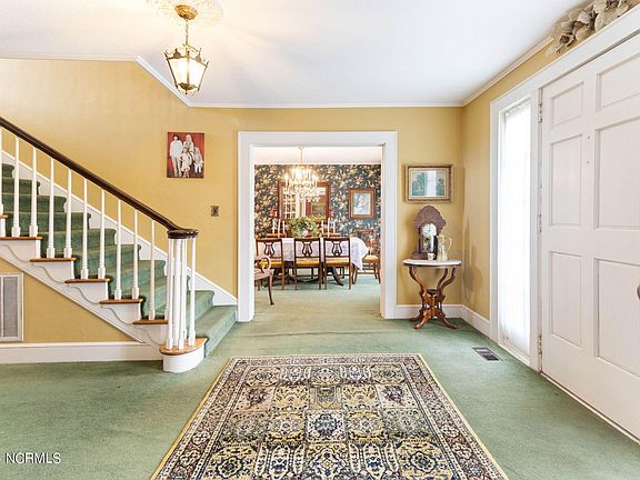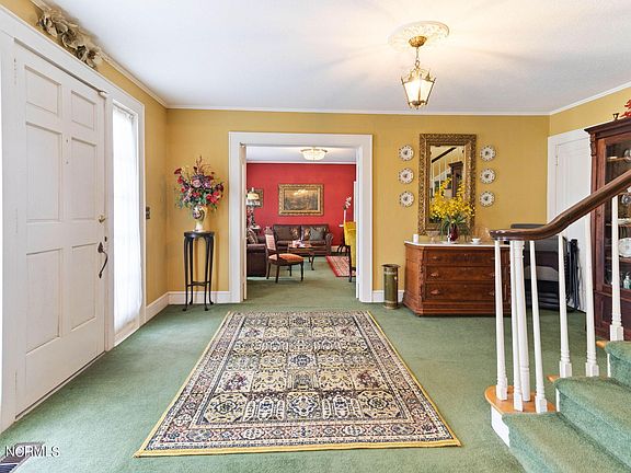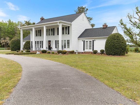 Introducing a rare find, this stately home with 7 acres. A truly exceptional 2727 sq ft southern colonial home, plus attached apartment/in law suite with 429 sq ft! With 4 sizeable bedrooms and 2 full baths, this grand two story home longs for those who want to enjoy nature, scenic landscapes, and a notably impressive home in a rural setting. Escape to your own retreat with stunning views from the expansive rear balcony where wildlife views are abundant. With captivating farm and wooded surroundings, the home itself exudes southern charm, with character and craftmanship at every turn. Ornate fireplaces, immense living room, bonus room, beautiful staircase, a jaw dropping formal dining room, a large country kitchen and huge walk in laundry room. The attached in law suite includes a large studio style set up with a full bath and ample storage room/closet. Palatial porches on front and rear of home boasts expansive space for making outdoor memories. Includes a greenhouse, and two detached storage buildings! The main storage building, near greenhouse, has new juniper siding and a new roof, with power! Come make this haven yours, all nestled within the picturesque landscape of Kelly NC, just 37 miles from Wilmington.