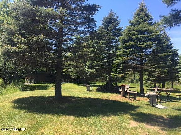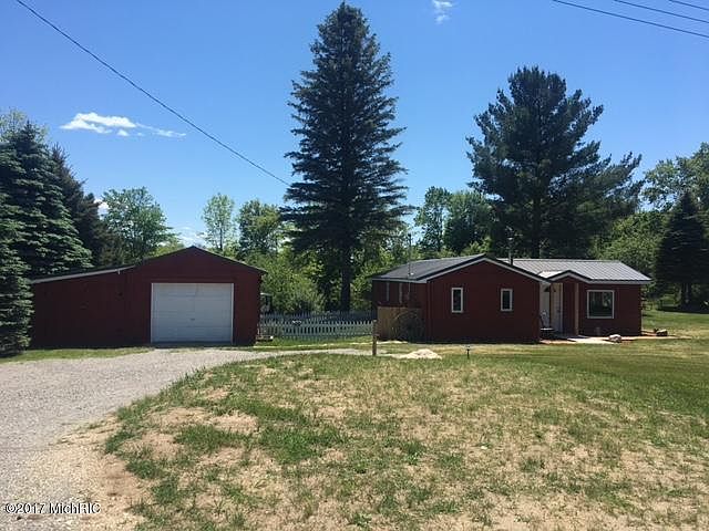 This custom built 2 BR, 1 Bath cabin, with 200' of Mighty Muskegon River front is privately tucked back in the woods. Offering log beams that line the cathedral ceilings, knotty pine interior, Arian counter tops, tile floor, hickory cabinets, new metal roof & 4" well are just a few things to prove the character in this home. 2 car garage with another shed & lean to offers plenty of storage and apple trees to welcome the wildlife.