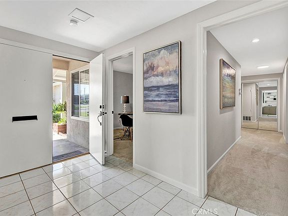 Expanded single level home on a cul de sac in a very desirable neighborhood. Enjoy this true pride of ownership home with excellent curb appeal. As you enter you will notice the fresh paint and new carpeting. Popular floor plan with the master suite on one side and secondary bedrooms on the other allows for privacy since none of the bedrooms share a wall. The primary suite is spacious with a double closet and the bathroom has a heat lamp and new fixtures. Both bathrooms have refinished cabinets with soft closing drawers and cabinets, and both have new low-flow high-seat toilets. The hall bathroom has dual sinks with a newer counter, decorative mirrors and the rain shower and tub has 24X12 porcelain wall tiles. The large custom gourmet kitchen is remodeled with newer refaced custom cabinetry, self-closing sliding drawers and cupboards. There is a good-sized pantry with pull out drawers.All Stainless steel appliances. A Jenn-Aire 4 burner cooktop with BBQ grill, Kitchenaid double oven, LG dishwasher and a microwave. The adjacent dining room has a new light fixture. One of the special focal points of the home is the 400+ sq ft permitted family room addition showcasing vaulted ceilings, wood beams and windows for that open airy feel. It’s the perfect space for your entertainment and gathering. Could be a media or game room too. The living room features a gas starting fireplace with limestone & granite inlaid and beautiful beveled glass French doors. Additional amenities include new baseboards, newer recessed LED lights in hallway, kitchen, and living room. Newer rain gutters front and back. Newer block wall fences, newer presidential shake 50-year roof installed in 2018. Takagi tankless water heater installed in 2019. There is a convenient inside laundry room with 24 X 12 porcelain tile floors and the washer and dryer are included. Attached 2 car garage. The front and back yard have eco-friendly water saving turf which always looks good and very low maintenance. The backyard has a durable Alumawood patio cover. There is also a soothing fountain. The backyard is private. This location is great for attending all three top rated schools. In the track is Fulton middle school and the award winning Courreges elementary school is nearby, and FVHS is just up the street a mile. Parks and greenbelts are close by for your enjoyment. Shopping center with Sprouts, Rite-aid and restaurants are just across the street for your convenience and the 405 freeway is minutes away.