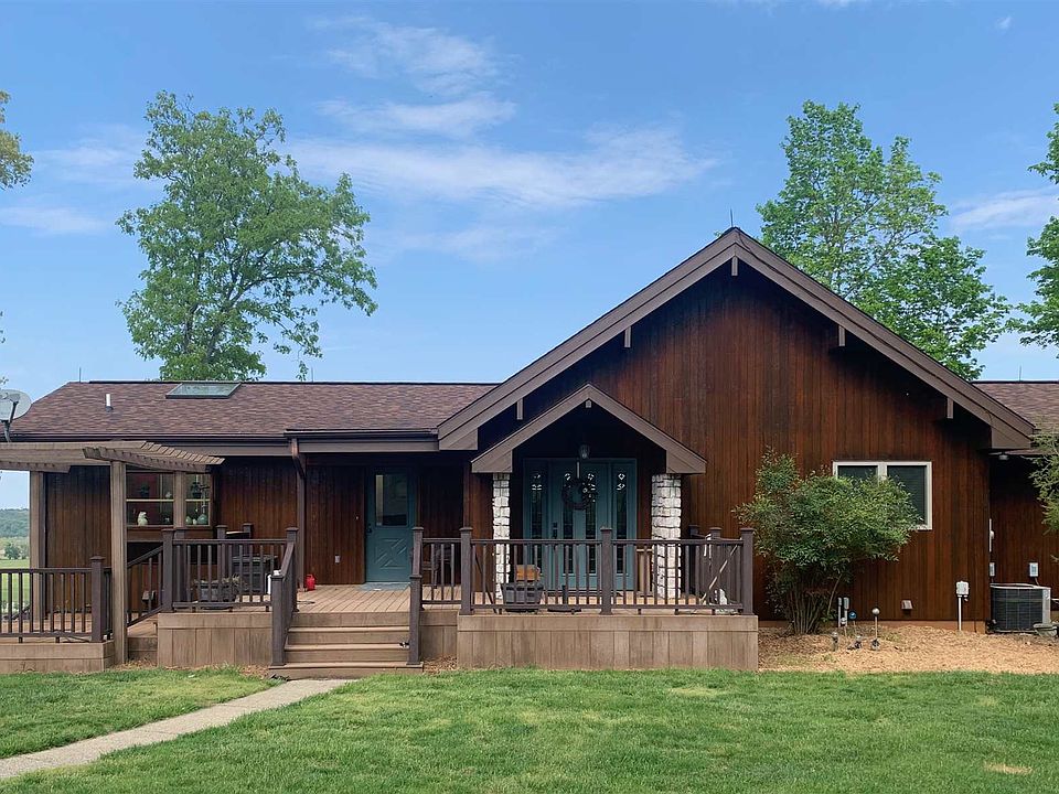 Nature, beauty, and serenity are the first things that come to mind in this gorgeous home overlooking the Ohio River. This 3500 square foot home includes a 72 by 30 outbuilding with extra bedroom/office and bath. As an extra bonus, a climate controlled home gym and a workshop are also inside the building Located on the river side of the home is a beautiful shelter house that has a large stone fireplace and gorgeous landscaping. This property is perfect for living in full time or vacationing on the weekends. The property is a full 10 acres that joins government forest on the back border. You will enjoy your privacy and peace in this beautiful property and have a wonderful time entertaining your friends and family! The best of both worlds! The home is spacious with a bright, beautiful eat in kitchen that opens to the great room. The kitchen features granite countertops and custom cabinets. There is a mudroom with laundry hook ups right off of the kitchen. 17 foot western cedar ceilings, huge windows, and a magnificent view make the great room one of a kind. The stone fireplace will make even the coldest nights cozy and warm. A huge master bedroom and ensuite as well as another bedroom/bathroom combo make up the top floor. The downstairs has a beautiful, large living area with windows overlooking the river as well as another large bedroom and bathroom. There is a large storage area with another washer dryer hook up and a sauna. Access to both the garage and the outdoor lower deck are from the great room area. Only steps away is the pavillion/shelter house that includes a large fireplace and water feature. The home has a whole house generator, fiberoptic internet service, and city water. There is additional acreage available as well as a horse barn and pasture.