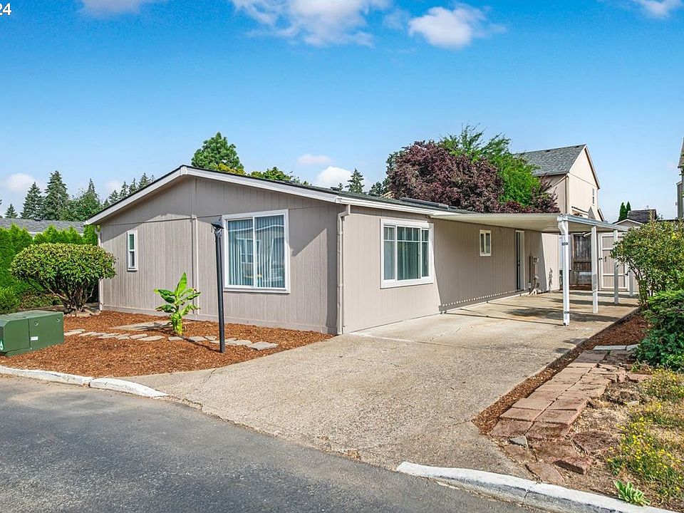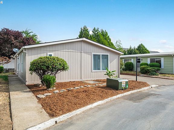 Fully remodeled manufactured home in Heritage Village! New interior/exterior paint, new kitchen w/ SS appliances and granite countertops, new bathrooms, new laminate flooring throughout, new AC/Furnace, new water heater, and a newly built shed! Enjoy the open concept with a split bedroom layout. Primary bedroom features 2 large walk-in closets and an ensuite with walk in shower! Close to park amenities and 185th for shopping conveience! Park rent is $1,233.
