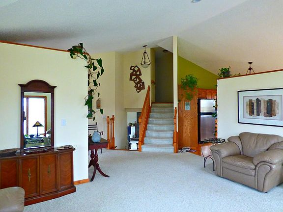 Situated on a dead end street near parks and recreation is this tasteful multi-level home. Hardwood floors, spacious kitchen, double ovens, open floor plan, large bedrooms, workshop and 3 stall garage welcomes it's new owners! Light and bright with slate and limestone gas fireplace. Abundant cabinetry for storage. 2 separated entries to garage. Relaxing front porch and private back deck. Spacious lot with irrigation system and room for additional garage/shop. Must see!