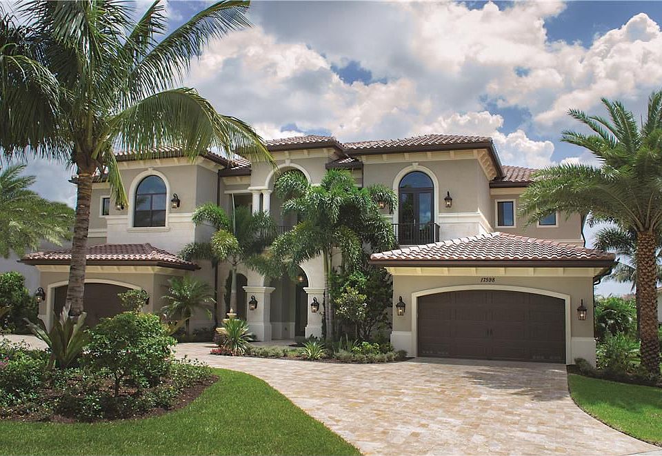 Location Grande Este Way, Boca Raton, Florida. An exclusive new guard-gated community, The Oaks at Boca Raton offers resort-style living in Old Florida beauty. World-class amenities feature a Santa Barbara-style clubhouse with spa and fitness center, a tropical pool, poolside café, and award-winning 12-court tennis center. Property Replete with the latest luxuries, this brand-new Mediterranean Revival lakefront estate is a masterpiece by leading high-end builder Monaco Custom Homes, a division of GL Homes. A romantic fountain adorns the courtyard entry. By the lake, the expansive outdoor entertainment area features a custom pool and spa next to a loggia with summer kitchen. Residence Rich finishes are fashioned with artful flair in a total of 9,488± square feet with 6 bedrooms, 6 full and 2 half baths, 2 laundry rooms, elevator, Crestron electronics, and 4-bay garage. The grand foyer flows into the lakeview window-walled living room set off by a fireplace and elegant moldings. Opening by the pool, the coffer-ceilinged club room has hand-scraped hardwood floors, a wet bar, and cabana bath. The theater room is adjacent. In the formal dining room, a butler’s pantry connects into the epicurean’s kitchen with furniture-grade cabinetry, marble and granite counters, dual islands, Viking dual-fuel range, Sub-Zero refrigerator, and dual dishwashers. Lakefront views open through the window-walled family/breakfast room leading to the loggia. A powder room and staff suite complete the main level. Upstairs, the loft overlooks the lake. Five bedroom suites feature luxe master quarters opening to a wraparound lakeside balcony. Accompanied by 2 wardrobe rooms and a morning bar, the lavish marble-finished master bath offers a Roman tub, walk-in shower, and 2 water closets.