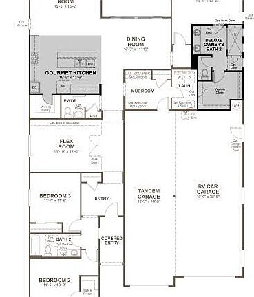 room; a versatile flex room; two secondary bedrooms with a shared bath; a laundry off the mudroom; an inviting covered patio; a 2-car tandem garage and an insulated RV garage. This home also offers 12x24 tile flooring, quartz kitchen and bath countertops, ceiling fan prewiring, coach lights, pavers at the driveway and walkway and front yard landscaping. Tour today!
