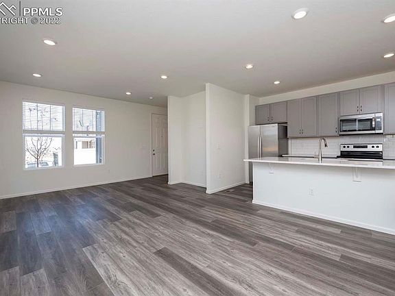 This brand-new move-in ready home comes with large 2-car garage, private side-yard and front porch. The lovely kitchen includes all Whirlpool Stainless-steel appliances, Timberlake 42-in. upper cabinets in light gray and quartz counter tops. This beautiful home also features upgraded Coyote Ridge vinyl plank flooring, 9-ft. first-floor ceilings, 8-ft first-floor doors, spacious unfinished basement with rough-in plumbing and an upstairs loft and laundry room. Be the first to live in this beautiful new KB Home! Close community amenities include a pool, playground, basketball court, tennis courts, pickle ball court, miles of trails and more! All are located within walking distance. This home has very convenient access to all that Parker and Castle Rock have to offer. Come out and see it today!