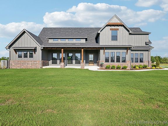 $8500 Fence allowance for this New Construction in Bixby School District! This modern farmhouse on 2.5 acres m/l has a new look inspired by a classic style with a twist or two that turns it into something fresh. Clean and simple with a straight forward profile this 4 bedroom is highlighted by a broad front porch and a light and airy interior with huge well placed windows and a design flow that tackles the practical challenges of everyday life. The open plan has a vaulted and beamed family room with a sight line to a sunroom along the back of the house that faces the sunrise. A center island kitchen has space for dining and lounging and cultivates a cozy country atmosphere that flows to a functional yet beautiful laundry room and to a stylish office with barn door, built-ins and window seat. Designed to draw the eyes beyond the four walls to the peaceful surrounding views the first floor main bedroom accesses the sunroom and an ensuite bath designed with a timeless elegance. Upstairs are three spacious bedrooms with an open den Upstairs are three spacious bedrooms with an open den in addition to a large game room perfect for game tables or media space. 3 car garage, central vacuum, irrigation.