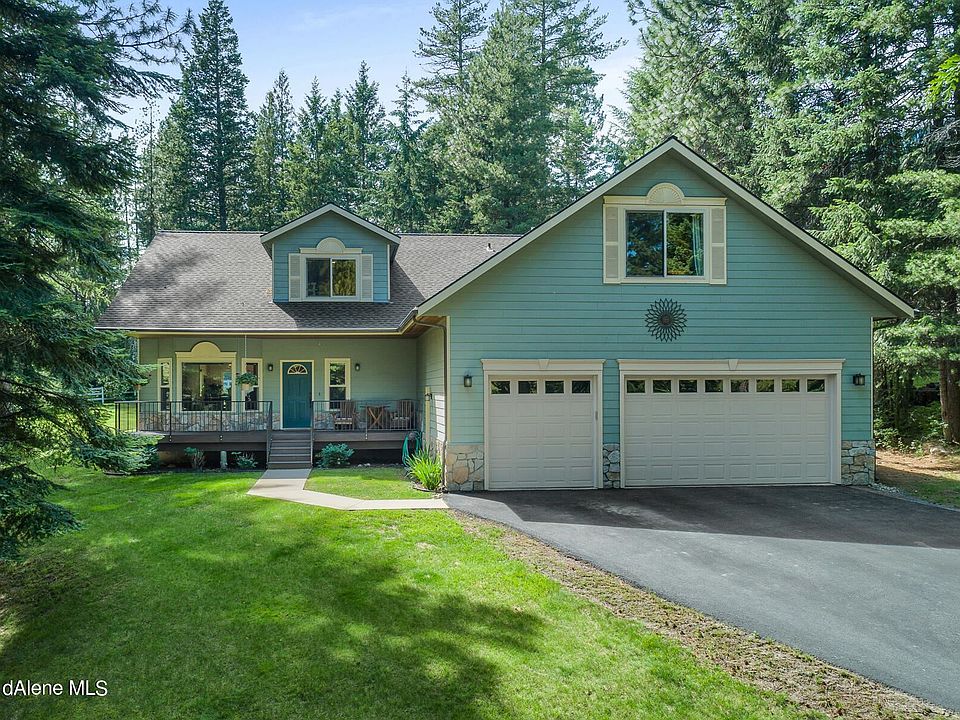 Serene 1 acre wooded parcel, move in ready 4 bed 3 bath custom home. Oversized 3 car attached garage with over 3000 sq feet of living space. Peaceful neighborhood that feels like your in the country, but just 4 miles to downtown Sandpoint, and a short drive to the top of Schweitzer Mt! 2022 Upgrades include new roof, front and rear Trex decking and new railing, rain gutters, with guards, LED lighting inside and out, oil rubbed bronze plumbing, and lighting fixtures, new carpet and fresh interior paint. Slate tile accents and more. Gourmet kitchen with all new stainless appliances, including a gas cook top, double ovens, refrigerator, dishwasher, and microwave. Granite counter tops. New custom window coverings throughout. Seasonal creek on lot. Wildlife and hiking out your front door!