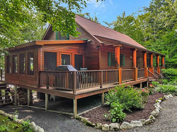 LONG POND Welcome to your new lakefront retreat! This masterfully crafted 4BR/4BA year-round home on a 1.09AC lot with 150' of lakefront boasts a charming covered porch, side deck, screen porch with lake views, well-equipped kitchen with SS appliances, granite countertop, dining area and large island, cozy living room with wood burning fireplace, home office, half bath and primary ensuite with private bath all on the main floor. Above are two large bedrooms with a full bathroom, while in the finished basement is daylight walkout basement featuring a family room with lake views and propane fireplace and laundry room & utility room. One of the best features of this property is the large 3 bay detached garage with living space above featuring a game room for pool nights, bedroom and full bath! Nice fire pit area by the lake with beautiful deep water frontage directly across the lake from Day's Store and Belgrade Village!!! This is your new lakefront oasis and where you can enjoy all four seasons of fun!