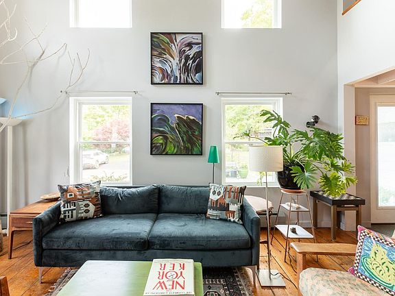 In the family for 70 years, this 1828 historic farmhouse on 9 acres with a fantastic, modern twist inside, is ready for the next generation of inspired creatives. This 5 bed, 3 bath home boasts light and airy interior architecture and a lofty living space downstairs. With two story ceiling height and a bank of high windows in the main room, the sunshine bounces off every surface in a playful fashion beginning the day with cheer. The kitchen is a quintessential farmhouse large room with a lot of windows welcoming the morning sun but cozy with an impressive 6 burner vintage commercial range with a large griddle, as well as a pass-thru to a dining room overlooking the nature pond. A convenient downstairs bedroom and full bath allows for plenty of flex space for an artist studio or work from home office with views of the great outdoors.A reimagined modern staircase leads to an atrium suite of 4 bedrooms upstairs with 2 full bathrooms for an expansive future in the home, its history as a boarding house coming in handy in modern times.Other amenities include a screened porch, garden shed, large fenced back yard with room for lawn games or an inground pool, dedicated vegetable and flower gardens, blueberry bushes with pear and paw paw trees. This home comes with a whole house generator, a 20' x 20' exterior workshop with 150 amp service with a shop heater (with a dedicated propane tank) and adjacent 20' x 20' unheated storage shed.This home is in the historic township of New Baltimore, truly an upstate rural destination in Greene County. Visit apple and cherry orchards in every direction with wildlife areas and hiking trails all around. Enjoy snowshoeing by winter or birding by spring or simply take in all the stars at night and all of nature by the pond.