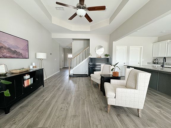 Like NEW CONSTRUCTION but better! Built August 2021, fenced in backyard, 3 bedroom, 3 full bathroom, massive bonus living area upstairs. Located conveniently near front of neighborhood with extra long driveway and no visible power lines. Owners sodded back and side yards ($8,000) with Bermuda grass and added magnolia, pine, and willow trees. Back covered porch area is ideally situated with three walls and a mount for an outdoor TV. Carpet removed and luxury vinyl plank flooring installed in secondary bedrooms. Blinds installed on all windows. Fixtures in master bath have been upgraded from construction grade to custom look. Slow close cabinets, granite, stainless appliances in kitchen. Nest thermostat upgrade. Washer and dryer do not convey. Home security system including sensors and cameras do not convey. Buyer to verify all information and measurements before making an informed offer.
