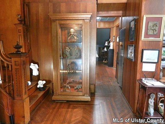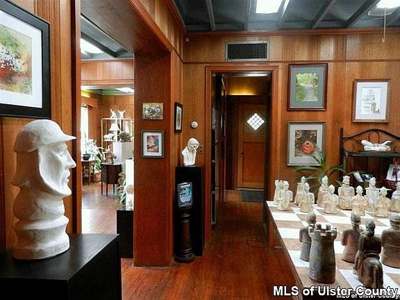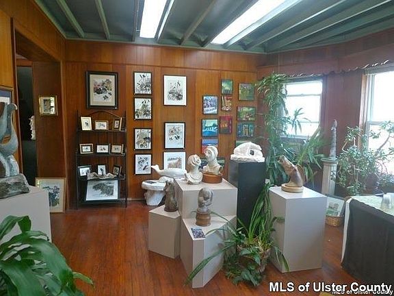 Terrific multi use building in great Broadway location. This large structure, used by current owners as Agustsson Art gallery, was smartly renovated & well maintained. Historic details include original parquet floor, Douglas Fir paneled walls, & oak floors. 1st floor 1030 sq ft has 4 showroom segments, small office, & public restroom. Lovely natural sunlight enhanced by professional gallery lighting. Walk out onto deck overlooking private gorgeous gardens that is a quiet country oasis in the heart of the city. Second and third floors provide 2 bedroom apartment totally renovated in 2005. Currently rented for $1500 month to month. Second floor is a bright and airy 1 bedroom with open floor plan, kitchen, 1 large bath, laundry facilities, large windows on all four sides, new Pergo flooring and original beams. Third floor adds one bedroom and studio or sitting area and great storage. Full basement currently being used as studio space with 500 Sq. ft shelving for storage, has walk out exit and is connected to gallery level via inside stairway. Garage is 745 sq. ft- 36 ft long, currently used as workshop, and more storage. Additional studio/office adjacent to garage with potential for additional apartment. Multi zoned furnace, roof & new electrical service circa 2006. There are 3 non metered parking spaces across the street and 3 in front of building. Off street parking is 4 along driveway plus owner has a variance to use church parking lot adjacent to the property. Walking distance to bustling waterfront with its galleries & restaurants & close to all amenities. 178 Broadway is currently being rented for $550 a month plus utilities to terrific long term tenant who would love to stay should the new owner want positive cash flow. This is the perfect opportunity for a buyer who wants to be part of Kingston's revitalization.