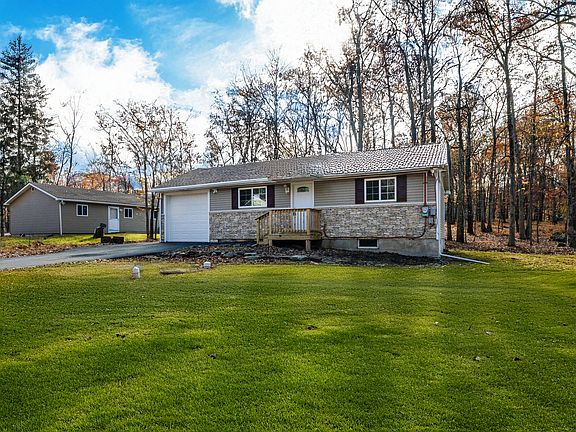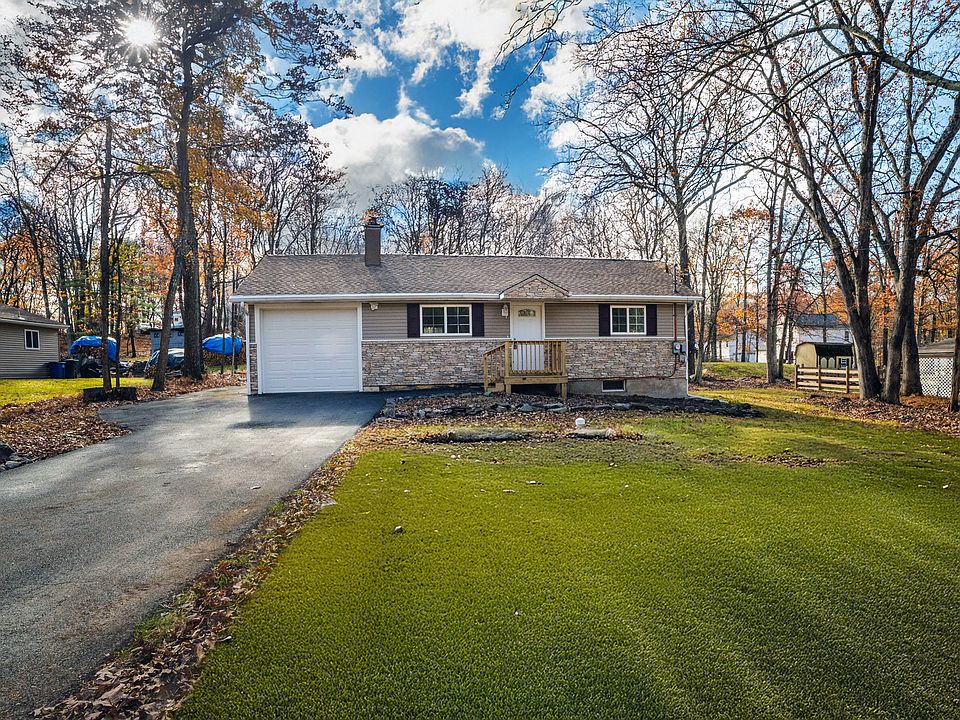 This tidy home has great curb appeal with stone-faced facade, paved driveway, and a flat half-acre front & back yard.