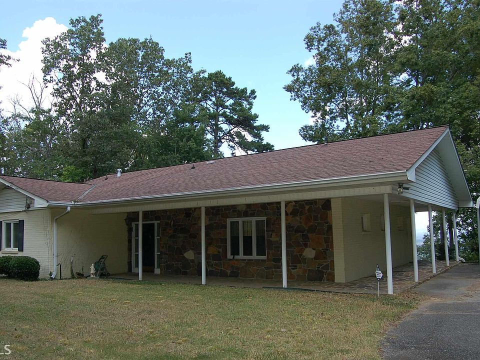 What a view! This home features a wide foyer entrance into large family room with stone wall fireplace, formal dining room, both with a glass wall of windows to take in the view. Large kitchen with Corian counter tops and breakfast area, 3 bedrooms and 2 full baths. The exterior of the home features stone and brick, stone patio, 2 car carport structure and 2 outbuildings. The level front yard has a wrought iron fence and gate as you enter the property. All the property is fenced in and the wooded back area can be managed to expand the view even more! Come put your personal touches on this house to make it your dream home!