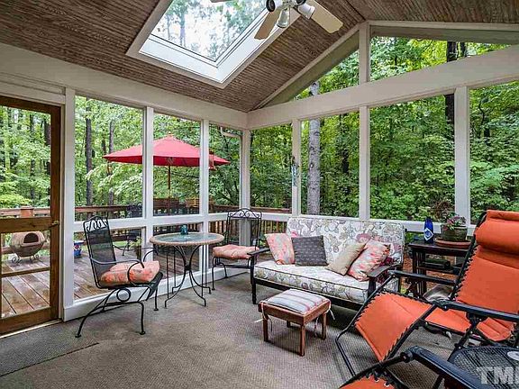 OVER 5 ACRES IN APEX & ONLY 20 MINUTES TO RTP. Well kept 3 sides brick home with NO RESTRICTIONS. BEAUTIFUL & PRIVATE! Enjoy nature & stay close. Home has open plan with granite & (GE Cafe) SS appliances. Duel fuel range. 3 bdrms + office that could be 4th bedrm. Gorgeous bonus room with wet bar, skylights & wired for surround sound. Water softener. Screened porch, with deck & a 2nd deck off bonus room. Workshop, boat cover, irrigation, & garden. You will love this one inside & outside. Oversized garage.