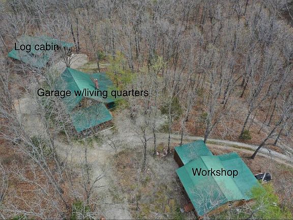 If living next to the National Forest is your dream, THIS IS IT! 19.07 wooded acres & wildlife paradise joins Mark Twain National Forest on 2 sides with riding trails already in place. Two houses give multiple options. While you complete the buildout on a gorgeous Amish built Native Pine Log Cabin, live in the almost finished 3 Bedrm Cabin with 3 car garage. Builder's plans changed before the big Cabin was complete so you have the opportunity to make many choices. The unfinished cabin is 28X32 Sq. Ft., full walkout basement with plumbing stubbed in and partially wired. Main level has a fabulous deck wrapped around 3 sides. Great room is partially built out with a cathedral ceiling and master bedroom loft. Native stone chimney goes from basement through the main level. The Garage with 3 Bedroom apt. is 30X40 with attached 2 car garage/shop measuring 14X40 with garage doors at each end. The main garage space is approx. 840 Sq. Ft. with a 16X9 ft. garage door. Interior finished out in 3/4'' plywood. The entire building is fully insulated with blown in foam insulation and easily heated with a wood stove in the garage. The walls in 2 car garage are finished in Luan paneling and could be converted into additional living space. Studio Living/Kitchen and bathroom are on the main floor with 3 bedrooms upstairs. Two bedrooms are finished, one unfinished. Multiple closets and under/eaves storage offer an amazing amount of storage space. The Detached Woodworking shop offers a large Workshop 480 Sq. Ft. and attached 450 Sq. Ft. Room for additional Storage. Lean-to with double wood doors is 320 Sq. Ft. The ''almost'' 20 acre parcel is heavily wooded. Seller cuts firewood for personal use but has not ''logged'' the property. Property line shares a pond with neighboring property owner. Secluded & Convenient location is a short drive to Lake Taneycomo, Bull Shoals Lake, Table Rock Lake & Branson. Sparkling clear streams of Bull Creek and Swan Creek are near
