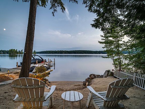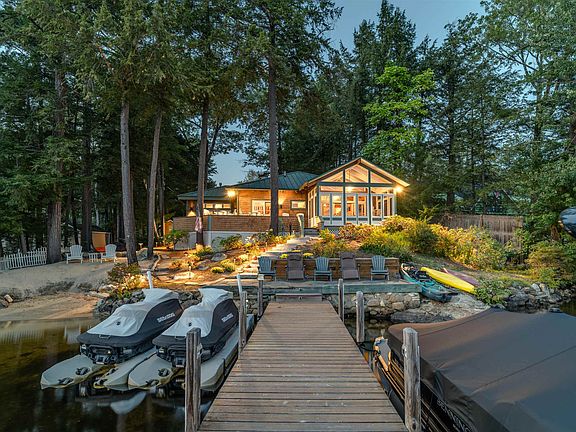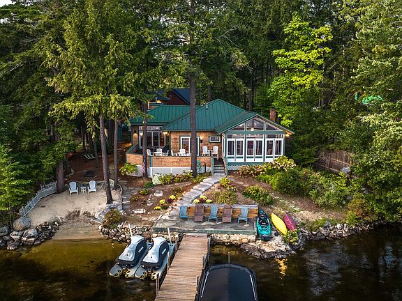 Welcome to your modern Adirondack paradise nestled along the pristine shores of Lake Winnipesaukee! This property boasts 100 feet of lake frontage with a walk-in sandy beach that allows you to enjoy the sun all day long and witness breathtaking sunsets. The main house features two generously sized ensuite bedrooms, with an additional well-appointed bathroom. The heart of this home lies in its open kitchen and dining area with beautiful granite countertops. As you ascend to the loft area, you'll find a versatile space perfect for extra sleeping space or a reading area. An inviting three-season porch off the living area finishes off the main house. An accessory dwelling with an in-law suite above provides additional accommodations. It comprises of a bedroom, kitchenette, with a ¾ bathroom. The partially finished garage below is currently being used as sleeping space, but could be enjoyed as is or converted to suit your needs. For the car/toy enthusiast or hobbyist, a recently built three-car garage awaits your collection. Featuring oversized doors, cedar siding, and epoxy floors, this space is not only functional but also aesthetically pleasing. The workshop area is perfect for pursuing your creative endeavors, plus the inclusion of a ½ bathroom adds convenience to your workspace. Above the garage, you'll find a 1300+ sq ft space that can be finished, complete with a mini-split and plumbing already in place for another bathroom. Don't miss out!