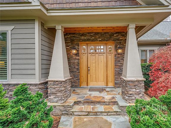 Wonderful Arts & Crafts home with great curb appeal in a beautiful setting of mature landscaping and canopy of hardwoods. Inside you’ll love the wide-open floorplan and soaring cathedral ceilings with wood beam accents. The spacious great room offers a floor to ceiling stone fireplace and flows to the dining area and kitchen that has plenty of richly stained cabinetry and granite counters. The almost 2550sf of main level living also includes an office, 4 season room with another fireplace, powder room, primary suite, and large laundry room. Downstairs has 2 guest suites, family room, lots of storage space, workshop with another half bath. Outside there is an expansive composite upper deck and covered stone terrace below. A furniture package is available for an additional cost. Join the club for a fun and active social life including golf on Tom Fazio’s Mountain Masterpiece as well as the other amenities mentioned. Eight minutes to downtown Hendersonville and all it offers!