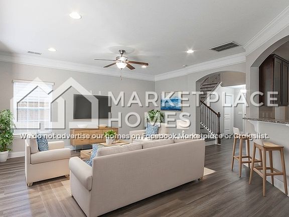 Stunning curb appeal and beautifully upgraded throughout! You will love the bright and open floorplan featuring a family room, dining area, and separate sun room--enough flexible space for entertaining any occasion with ease. The large and modern kitchen comes equipped with stainless steel appliances, granite countertops, built-in open shelving, walk-in pantry, and island. Relax and retreat to the oversized primary suite, boasting a trey ceiling, separate sitting area, walk-in closet, and a private adjoining bath with dual granite vanity, soaking tub, and separate shower. Backing up to mature pine trees rather than neighbors, you will love to grill and entertain outdoors on the spacious walkout deck. Backyard comes with full privacy fence too! Don't let this amazing opportunity pass you by and schedule your showing today!