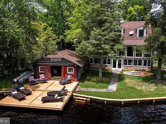 LAKEFRONT! Welcome to Tall Cedars! Enjoy Canoe Carnival from your own backyard! This is the waterfront home you've been waiting for! Enjoy breathtaking views from this year round home that feels as though you are on vacation all year round! Enjoy swimming, fishing, boating and paddle boarding on Lower Aetna all summer long. This 3-4 bedroom 2.5 bath home boasts 50' of lakefront and is the only home that has its own boat house! This is the perfect location with front row seats to the annual Canoe Carnival. Set back from the road, there is plenty of off street parking and an attached garage. Follow the meandering walkway to the front porch patio leading to the homes main entry. All the rooms are spacious with lots of natural lighting. The living room has custom built ins, picture window overlooking the front yard and opens to the kitchen with a breakfast bar. The kitchen boasts abundant maple cabinetry, Corian Countertops, tile floors, stainless 5 burner gas range with Viking hood, dishwasher, and refrigerator. The formal dining room overlooks the lake and features custom corner built-ins. The family room extends across the back of the home, with an adjacent 3 season sun room which take full advantage of these incredible views! An updated powder room is located off the kitchen along with a laundry room with washer & dryer, utility sink, and plenty of storage. A passage door here leads to the garage. The upper level has an exceptionally large master bedroom with three walk-in closets in addition to the closets in the hallway. The second bedroom also enjoys wonderful lake views and there is a full updated bath between these two bedrooms. With all the attic closet space, you could add another bedroom and bath if you so desire. Descend to the lower level where there is a family room with wood burning fireplace, a third bedroom and full bath. This is the perfect spot for an in-law/guest suite. This lower level is a walk-out to the lake and has an awesome entertaining porch area overlooking the lake. A new tiered dock at the lake, bulkhead, fire pit, and log cabin lodge are part of the backyard. The log cabin has a woodstove and opens up to the new dock. What a wonderful place to entertain your guests year round. This home has such a flexible/versatile floor plan. The rooms can be arranged to fit whatever your needs may be. Gas heat, central air, public sewer, well water. 3,850 square foot home and 358 square foot log cabin carriage house. Medford Lakes is home to great schools and a unique lifestyle! Go ahead...Jump in the Lake!