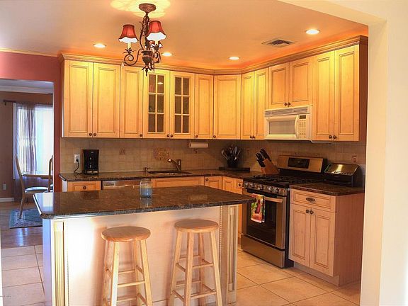 MOVE IN READY!!! This immaculate 3 bdrm, 1-1/2 bath home features hardwood floors, crown molding & stunning gas fireplace! The custom eat-kitchen features new stainless steel gas oven & dishwasher, beautiful granite counter tops and island. The living room is a SHOW STOPPER with vaulted beamed ceiling & an abundance of room for entertaining! Sliders off the living room lead you to a large deck with built-in seating and surround accent lighting; a perfect place for family & friends to gather! The deck also has a gas hook up for grilling. The backyard boasts a beautiful stone wall with landscaping & fence for privacy while relaxing on your deck! The master bedroom has walk-in closet & half bath w/sliding doors leading to the deck! This home is the one you've been waiting for!!!
