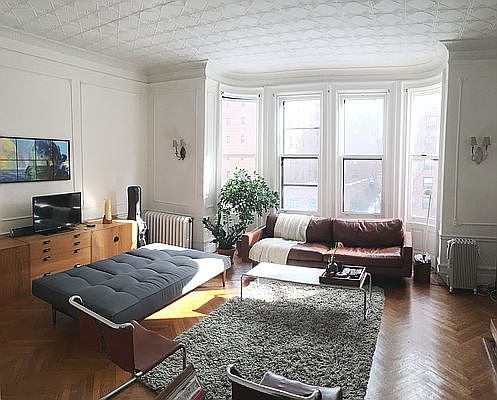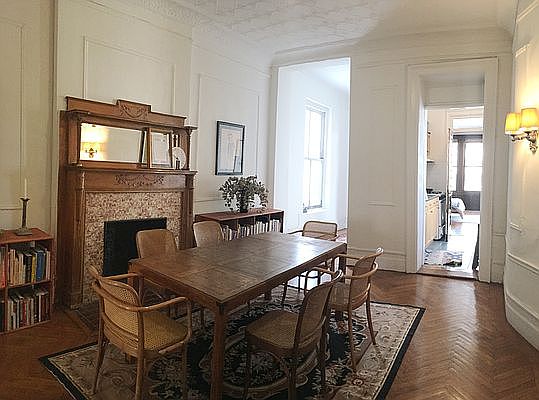 Grand 2 bedroom apartment in Historic Clinton Hill Brownstone. The entire floor! Entrance features classic English garden with many interior details including original quarter sawn oak wainscot and herringbone floors, 10' tin ceilings and 2 fireplaces. There are many huge windows including the copper bay window from the front bedroom. Two walk-in closets as well as two others. The building has been restored to perfection. Perfect for a couple or a share. NO DOGS. There is NO FEE. For more information or to schedule a viewing contact owner.